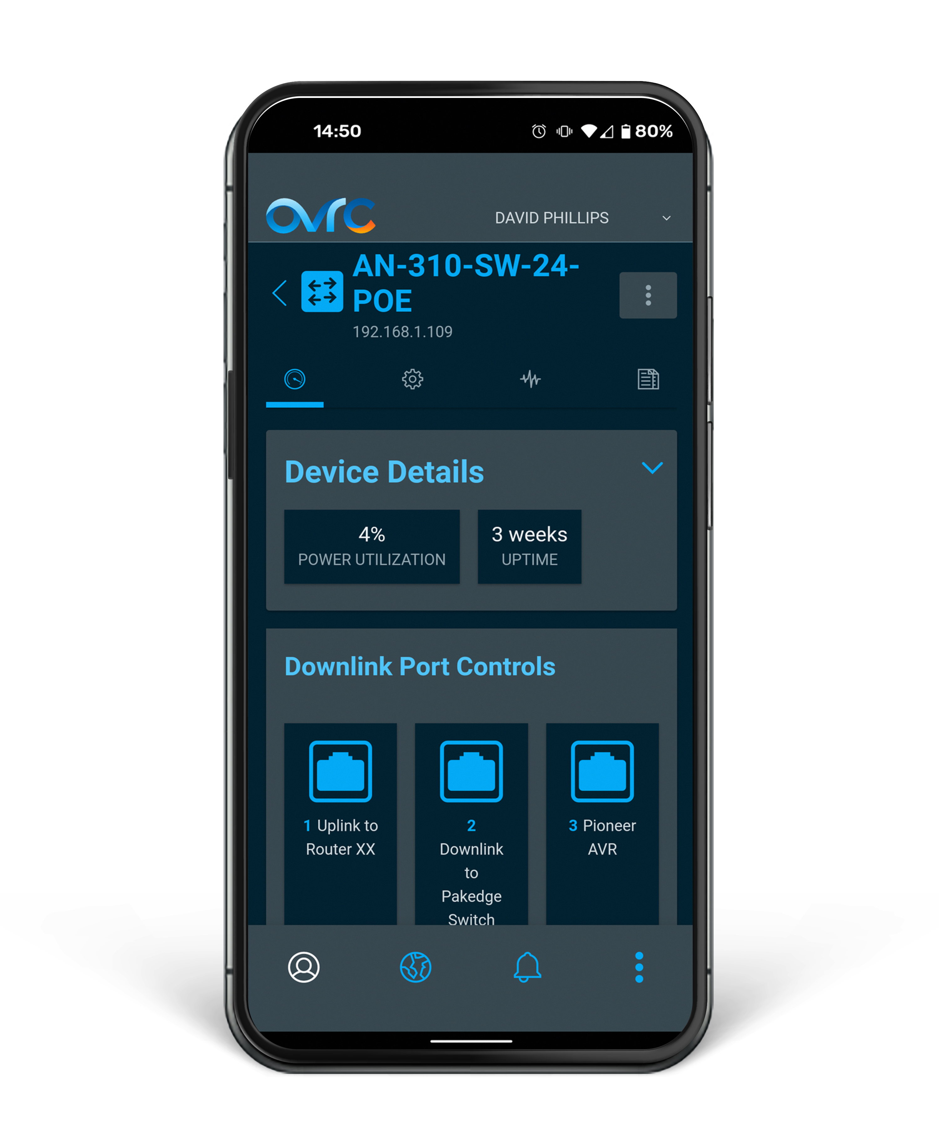 With the OvrC Connect app, we empower you and your team with direct control and easy fixes. A single tap can: